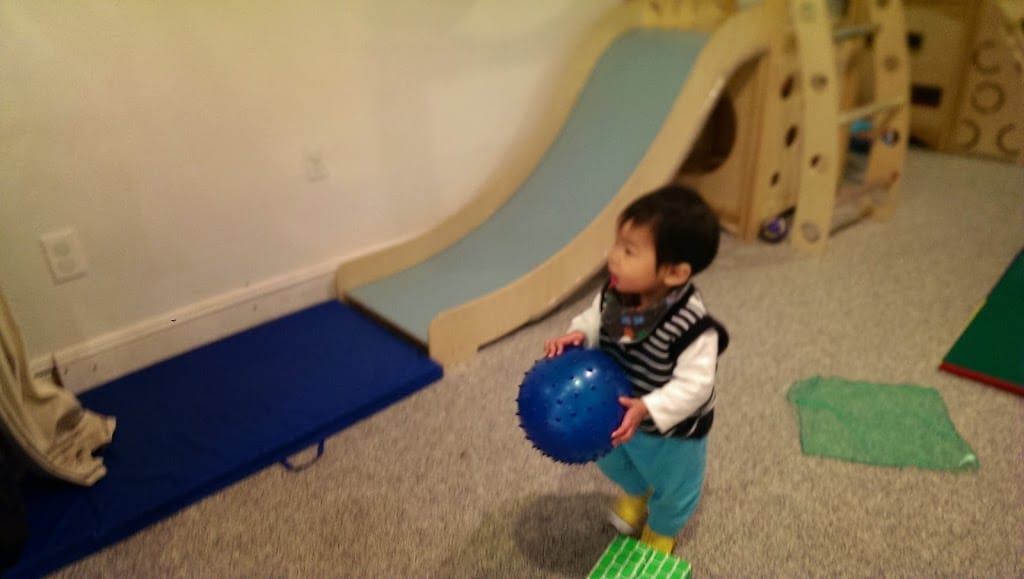 It's lucky we have a drop off play group service nearby, so we can let Cedric play with other babies before going to the daycare. 附近有家店提供早上到下午兩點讓小人們去玩吃睡覺的服務,因為托兒所一直沒有排到,這真是很好的替代方案。