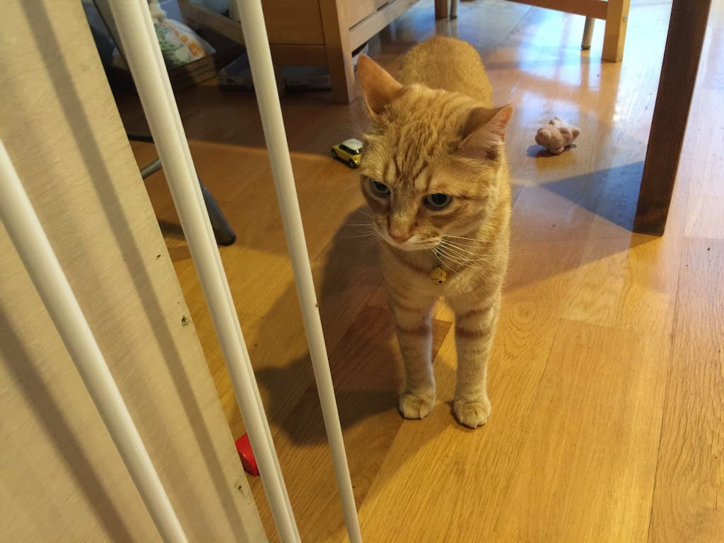 2023年的七月,赫然在後院的ramp下面發現一隻灰色的小貓。 看起來他有兄弟姐妹,但他們都可以四處跑,只有他太小沒辦法跟著跑,一個人落單,常常在ramp上面喵喵叫。看著他的媽媽好像都沒在照顧他,我們就放了一點食物給他吃。但他戒心非常重,只要一看到有人靠近,就會鑽進ramp裡面。就這樣來來回回好幾天,我跟香香說,妳來幫忙抓抓看,我們本想如果誘補不到就請專業的人來幫忙。那天我們把食物放在carrier裡面然後躲起來。等小貓半個身體進去吃東西時,香香馬上快手將他推進去,就這樣我們順利地抓到小貓。 因為他還沒有看醫生,我將他隔離在廁所裡面。趁她還小,我前後兩三天幫她洗了三次澡XD 但因為是新的貓,我的眼睛還是過敏了兩個月才習慣XD 當時柯南狀況不太好沒時間理會這隻小貓,但偷筆就會不時在門外勘查。孩子們將小貓取名為Skiddish,看醫生後才知道原來小貓是女生,哈哈。 當時因為我錯過預約時間,醫生說我可以先把她放著,他會趁有空閒的時間看他,想不到後來醫生跟我說她太兇了,他沒辦法幫她檢查太多。我心想,她是小貓噎,會有多兇。但醫生顯然遇到相當警戒的她,跟我說下次先讓她吃安定的藥再看