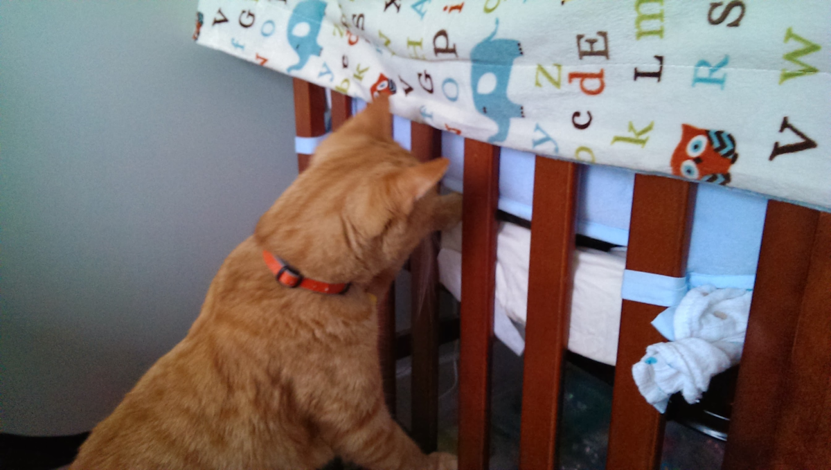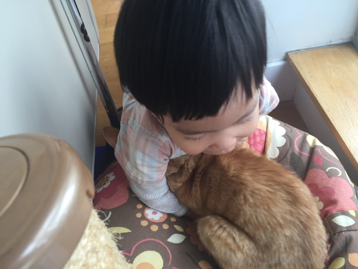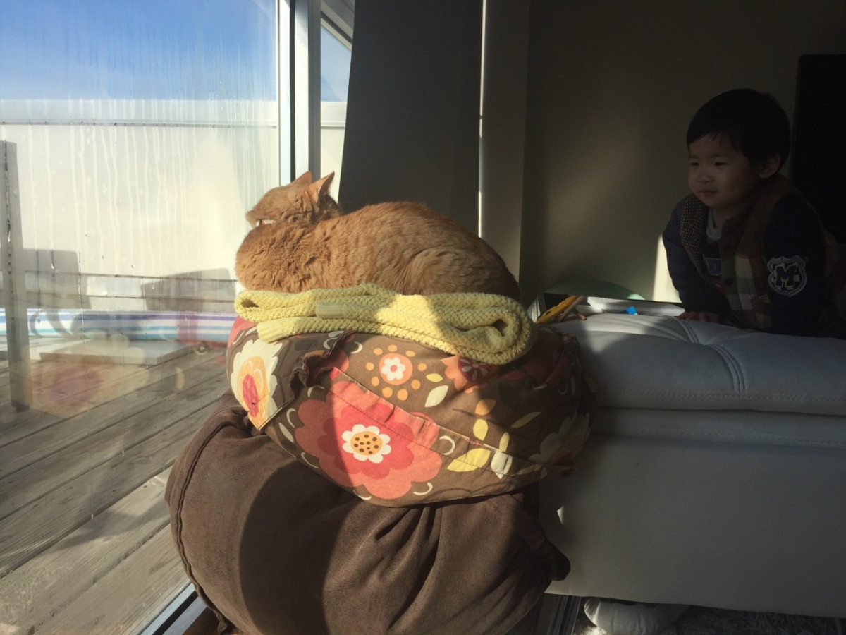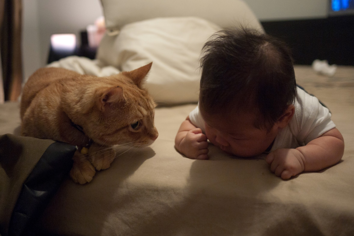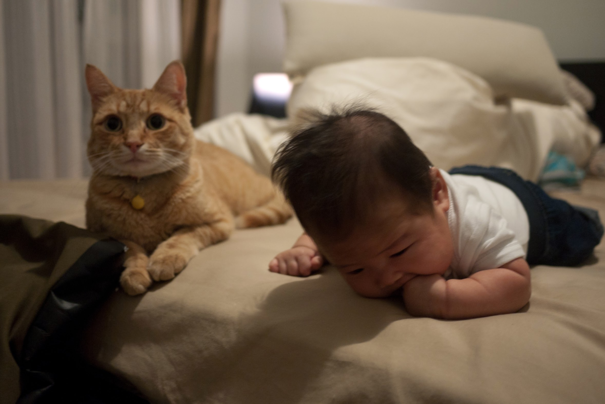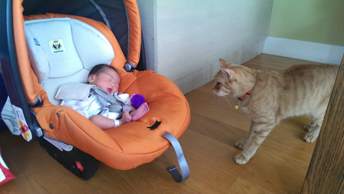 元元第一天回家的那天,柯南吃飯頻頻回頭看這傢伙有沒有要來「搶飯碗」。發現這傢伙還不會移動之後才安心。